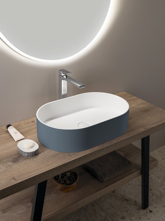 Sapho THIN 55x35 cm Rockstone pultra szerelhető mosdó, matt fehér/verde WN205-44
