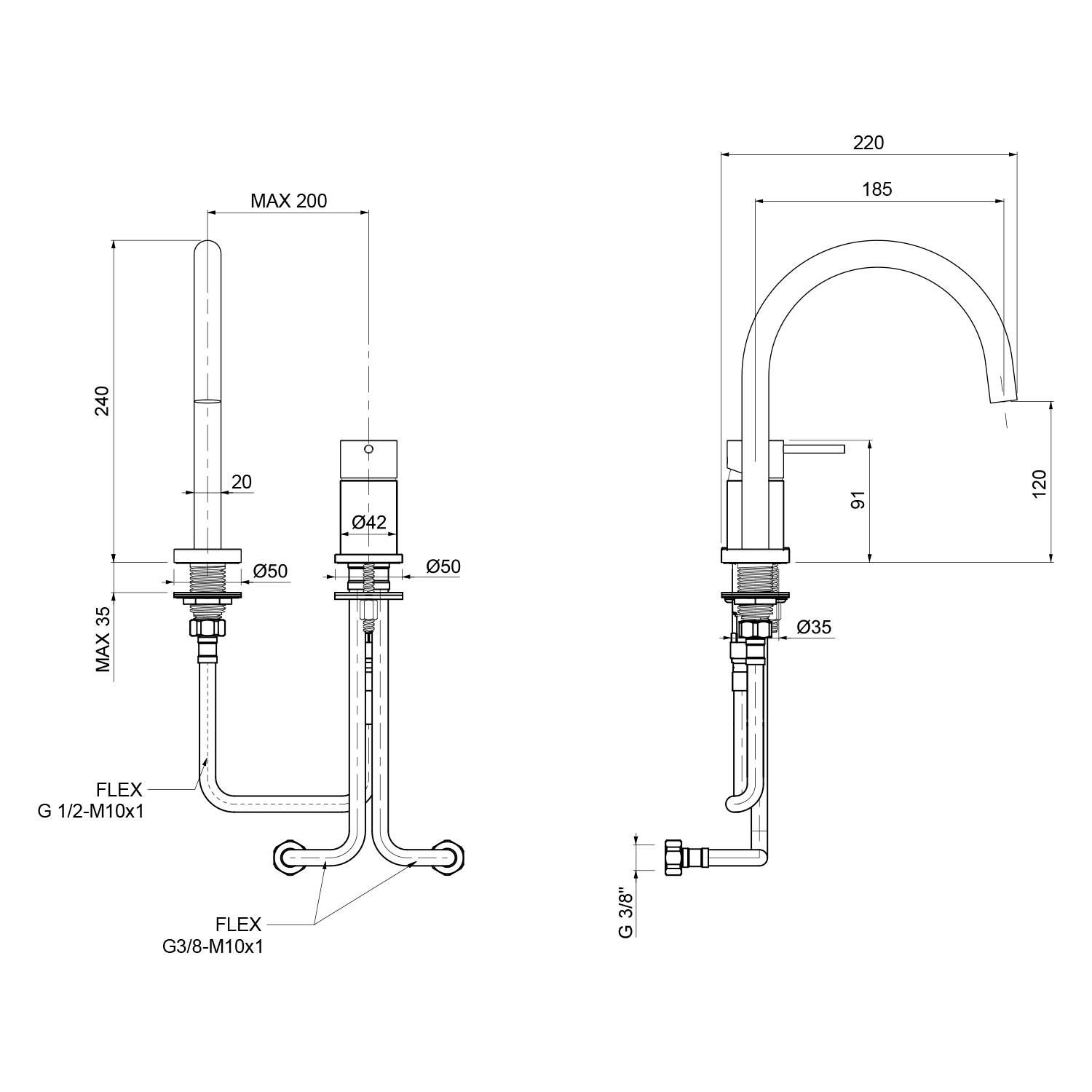 Sapho ULTRAMIX két csaplyukas mosogató csaptelep, matt fekete UT019B
