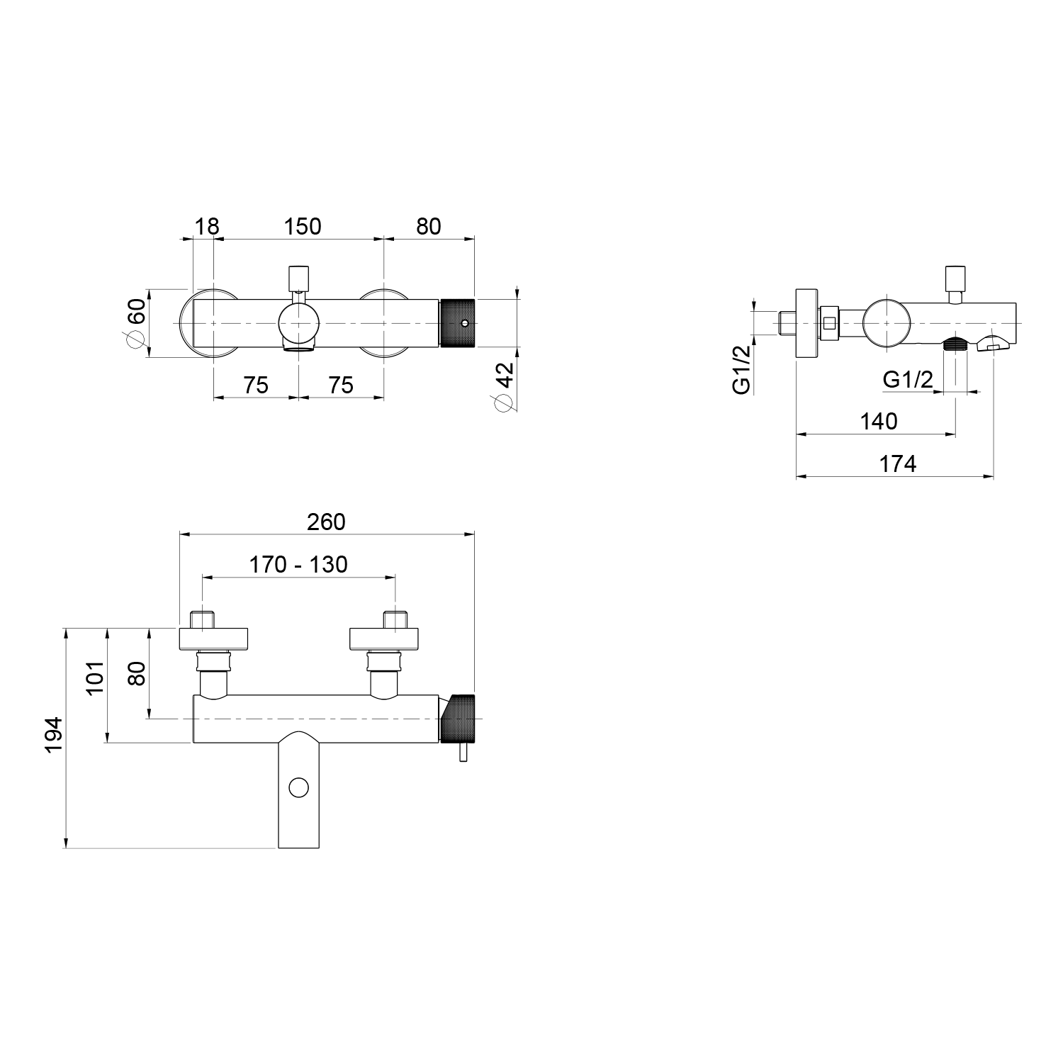 Sapho ULTRASAN fali kádtöltő csaptelep, matt fekete UT010VB