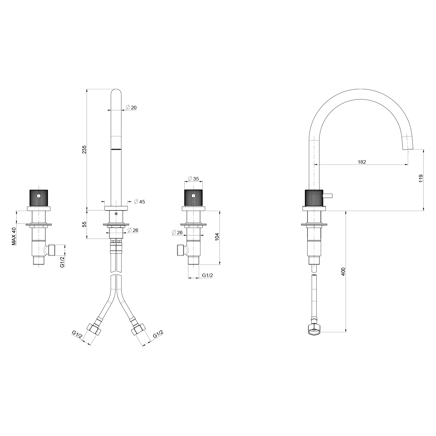 Sapho REITANO AXIA falba süllyesztett 3 részes mosdócsaptelep, króm (552 AXIA)