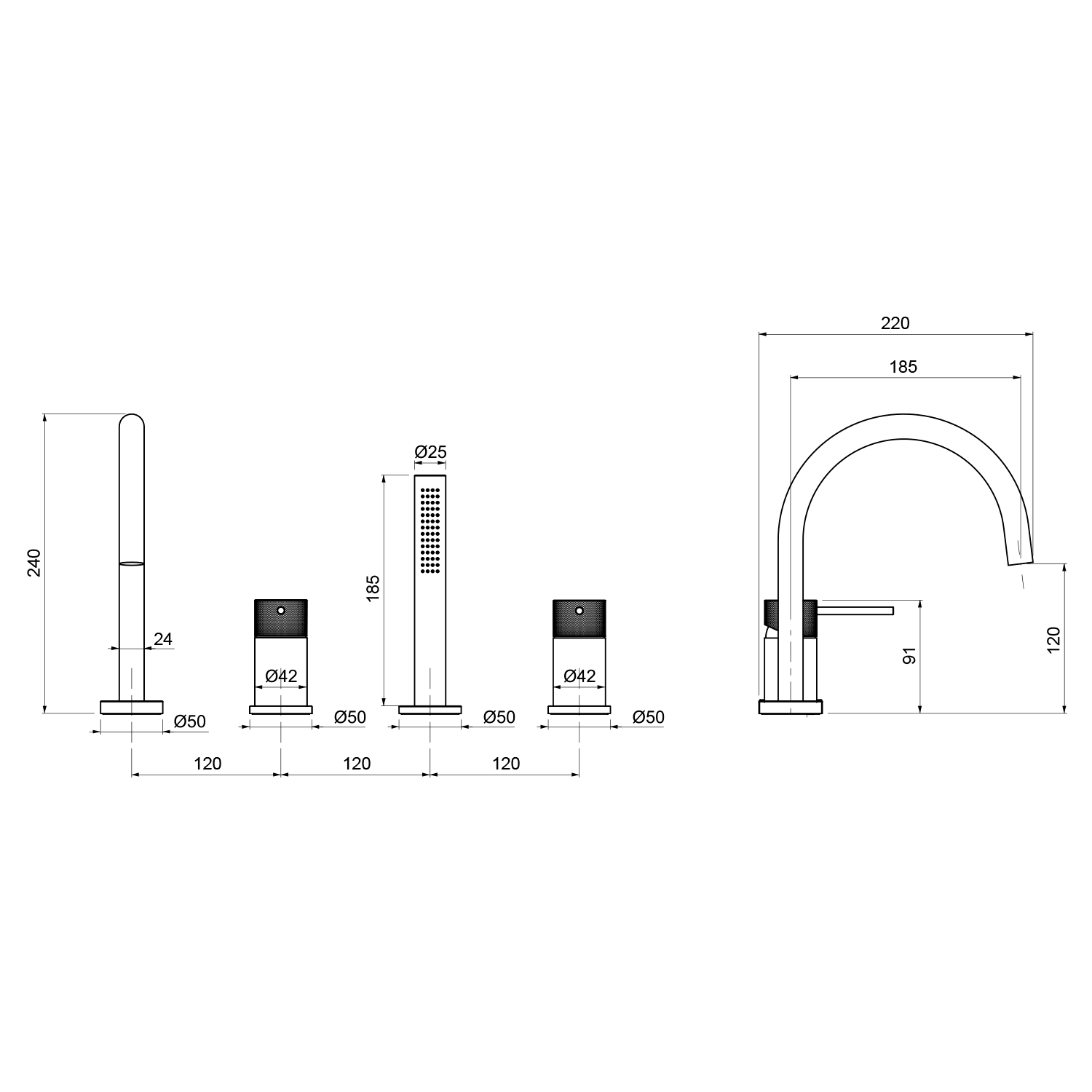 RAVAK Rosa kádperemre szerelhető vízesés csaptelep RS 025.00, X07P003