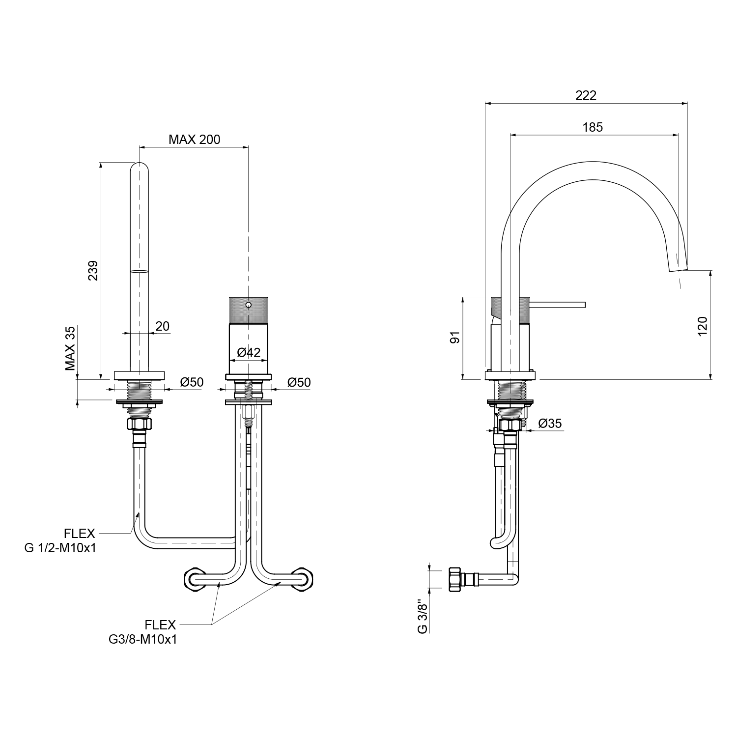 Sapho ULTRASAN két csaplyukas mosogató csaptelep, króm UT019V