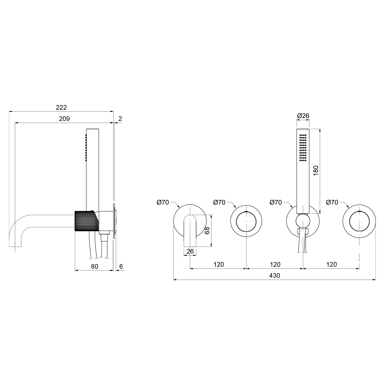 Sapho ULTRATAP 2-irányú falba süllyesztett csaptelep kádhoz, matt fekete/króm UT093TBC