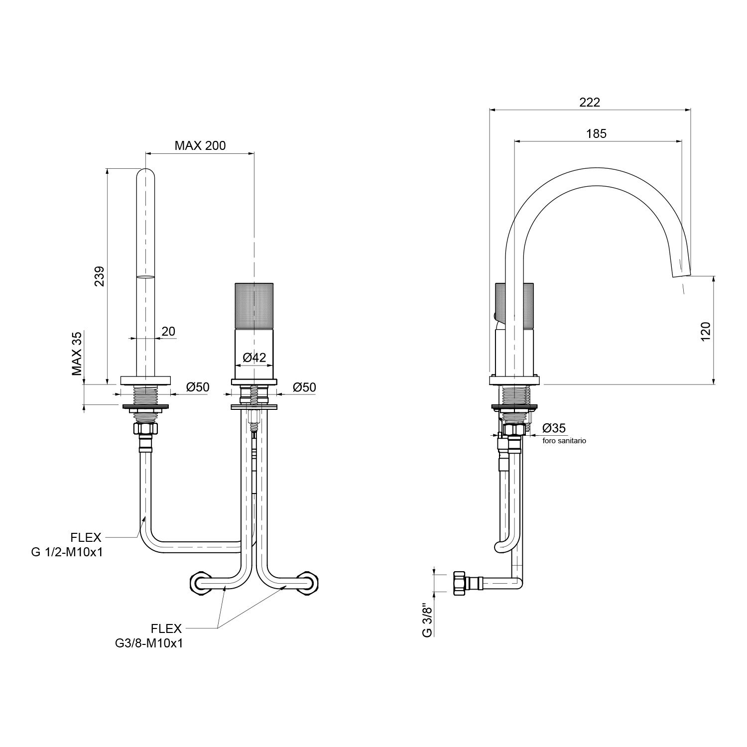 Sapho REITANO AXIA falba süllyesztett 3 részes mosdócsaptelep, króm (552 AXIA)