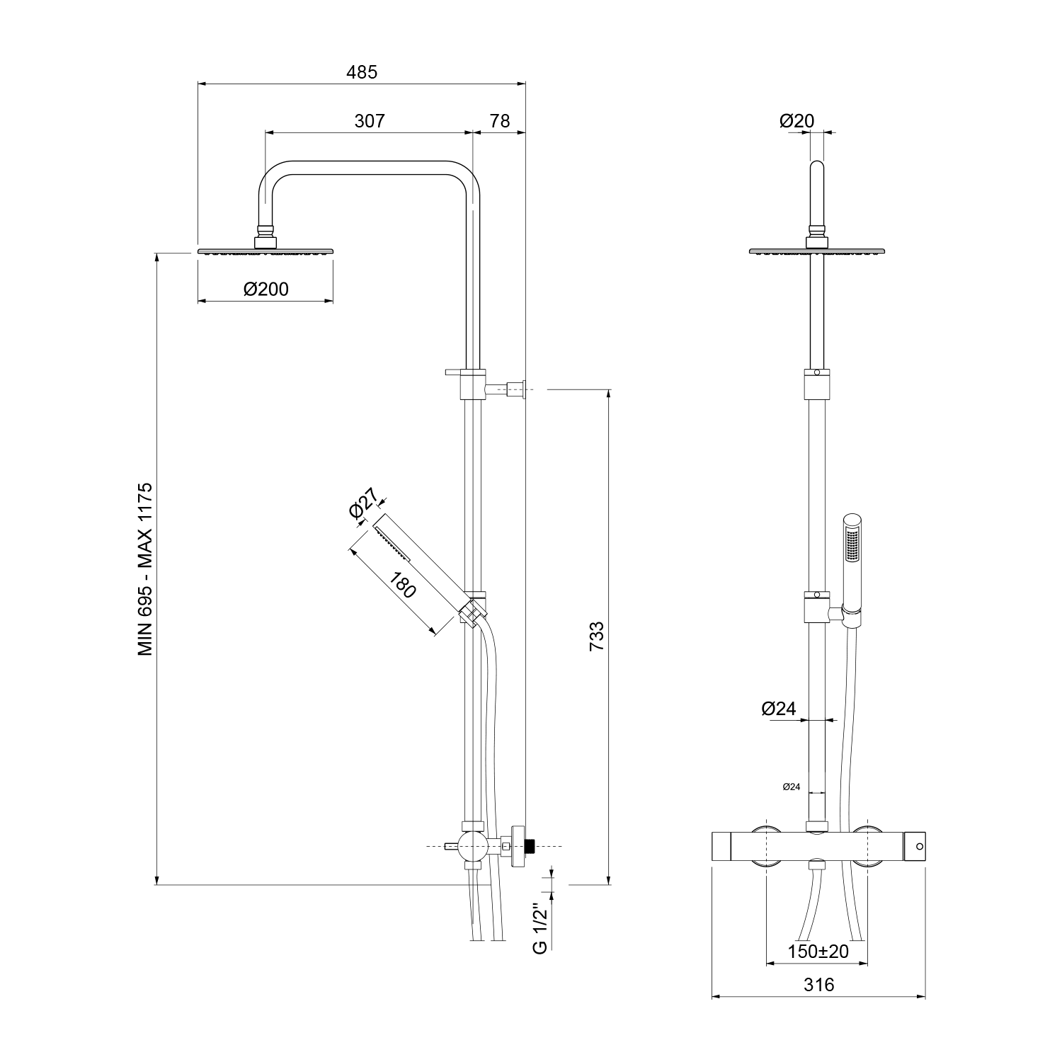 Sapho ULTRATAP zuhanyrendszer, matt fekete/króm UT139TBC
