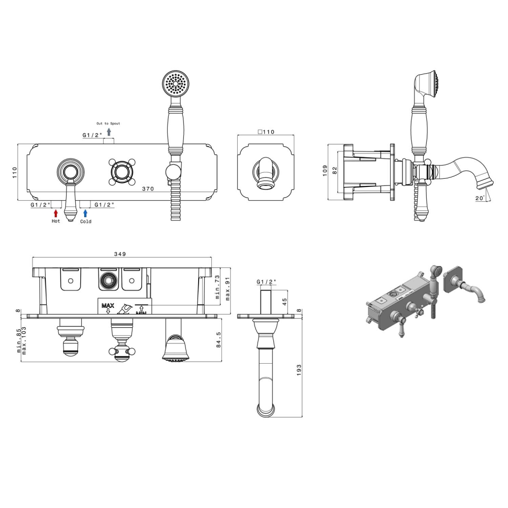 Bugnatese SIMPLE Fal alatti kádcsaptelep kézizuhannyal PVD fényes rame színben 6601PR