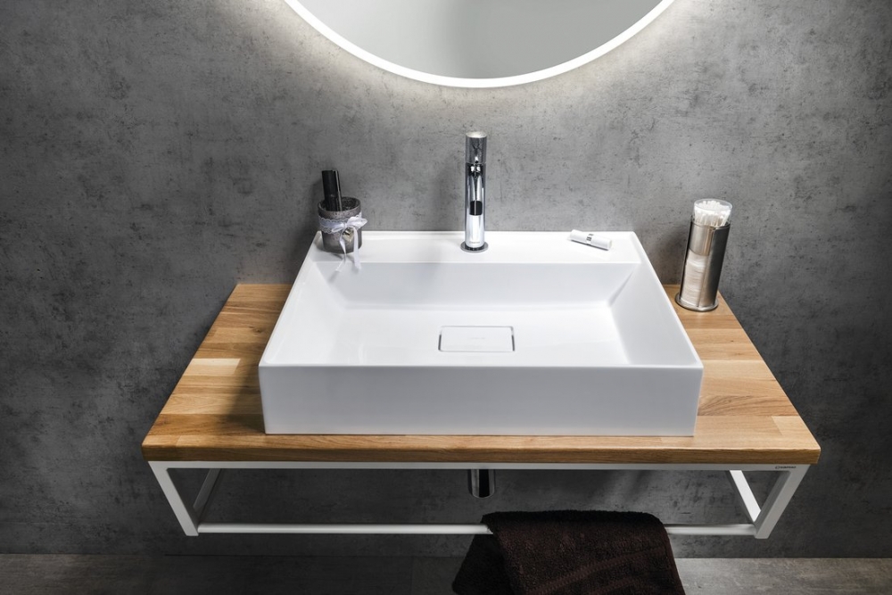 Geberit ONE mosdópult középső kivágással, pultra ültethető tálformájú mosdóhoz, 75x3x47cm, tölgy/melaminos faszerkezet 505.272.00.5