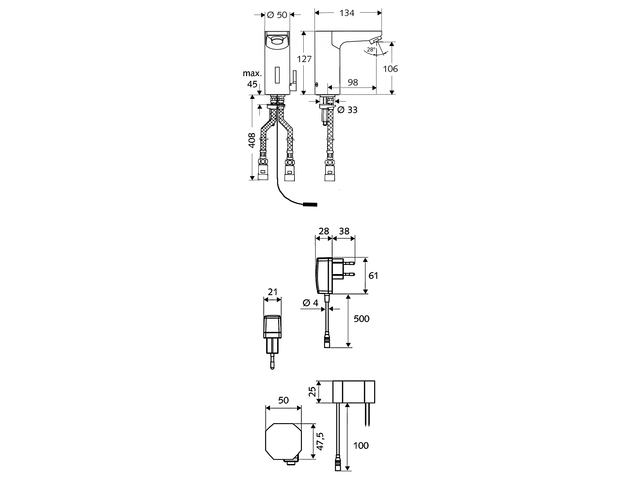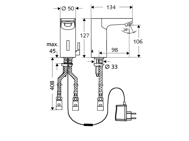- infravörös szenzorral ellátott kompakt álló csaptelep hőmérséklet szabályozóval