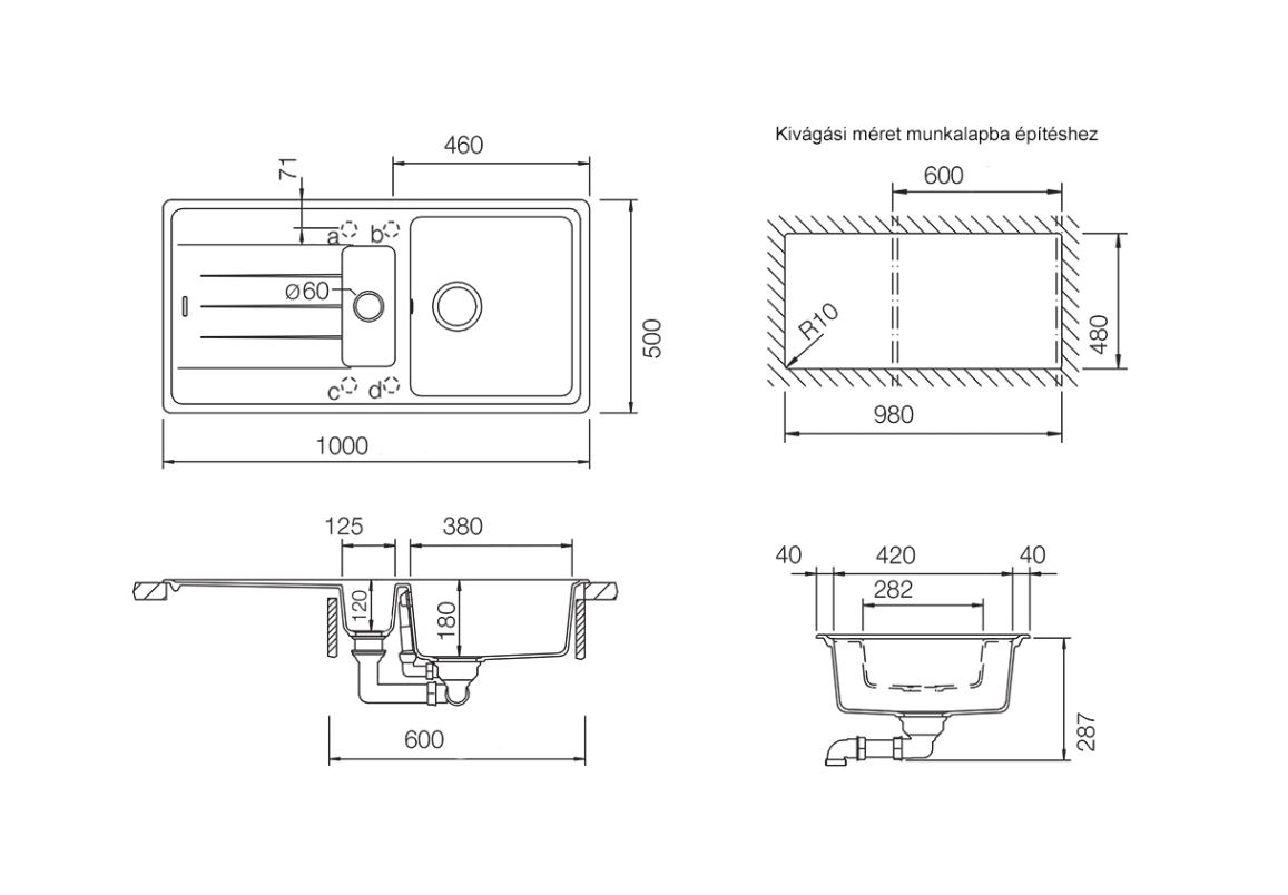 Tartozékok: lefolyógarnitúra, szűrőkosaras lefolyó, lefolyó, rögzítőkarmok