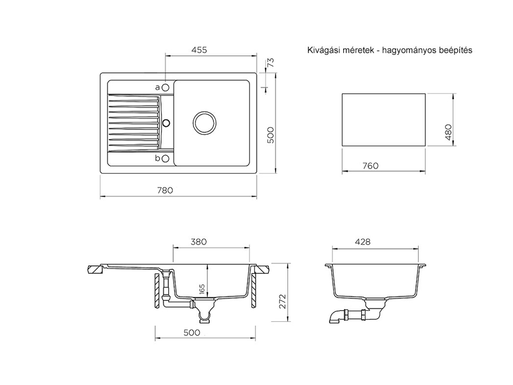 Mosogató méretek 780 x 500 mm