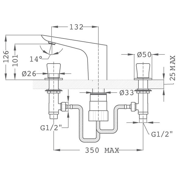 Bugnatese ORION Fal alatti mosdócsaptelep 26 cm kifolyóval, króm 5569CR