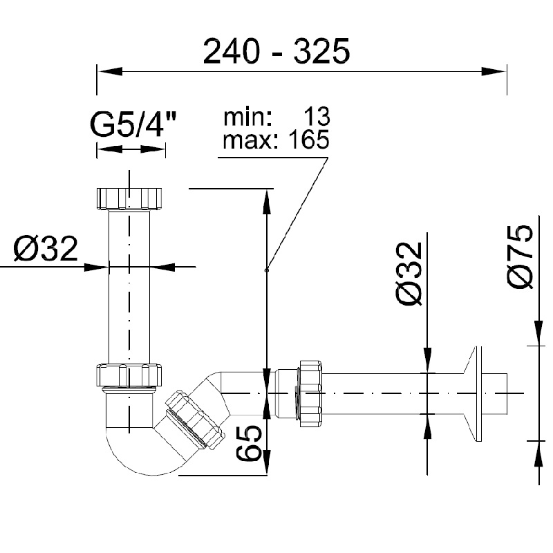 ALCA (Alcaplast) A45F-DN32 Bidé és mosdószifon DN32 műanyag
