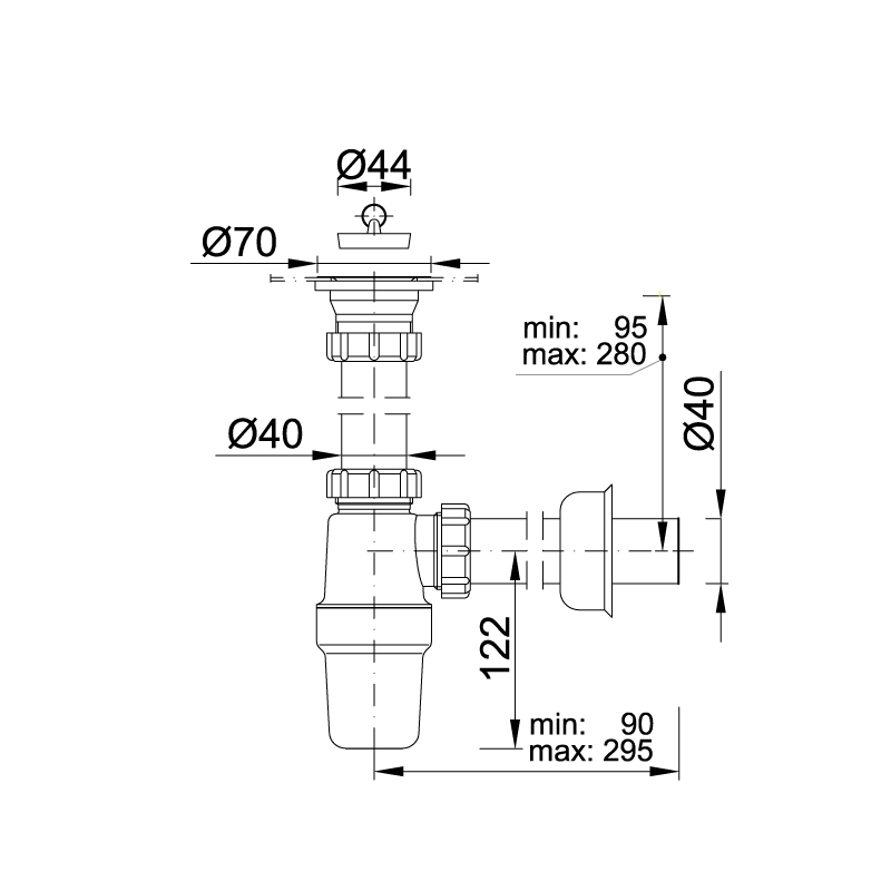 Styron egymedencés mosogatószifon, leeresztőszeleppel STY-538-2Styron