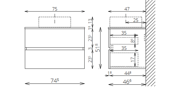 Marmy CODE 80x46x50 fügesztett alsószekrény, 2 fiók, laminált (mosdó nélkül) Dark Taupe 20 20 22 08 00 74