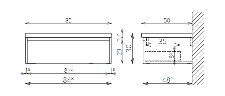 A weboldalon található képek a két fiókos változat fotói! A műszaki rajzon láthatóak a termék adatai!
