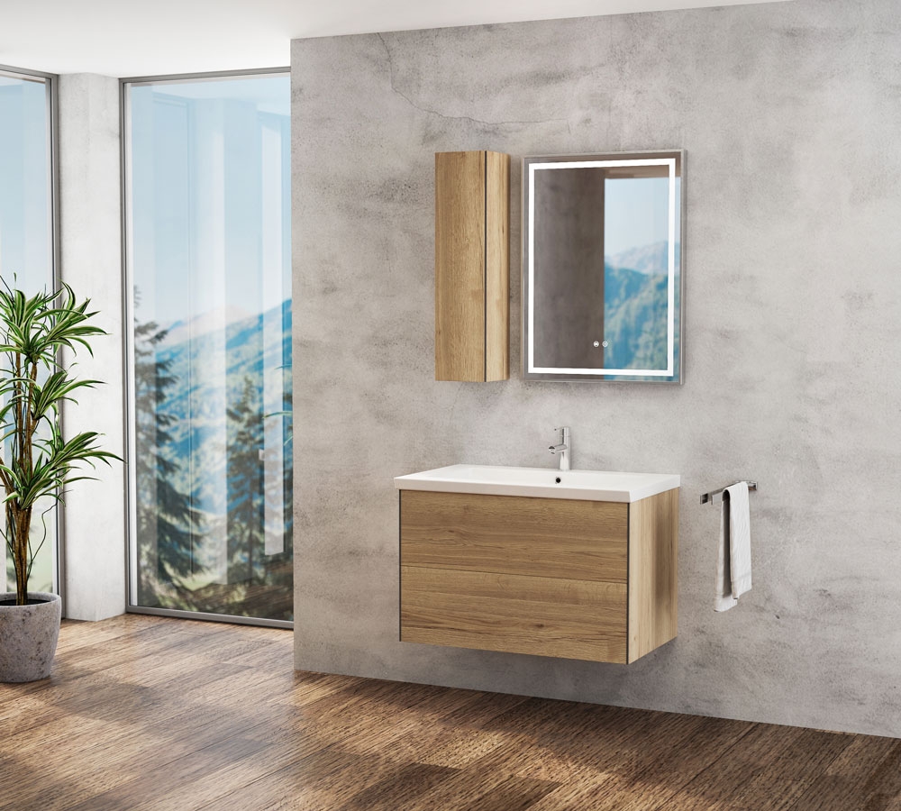 Tboss Bora 80 alsószekrény kerámia mosdóval, Mirror Box Cut 75 tükrös felsővel (több színben, komplett szett)
