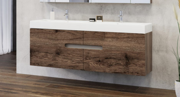 Marmy CODE 160x46x50 DUPLA függesztett alsószekrény, 4 fiók, laminált (mosdó nélkül) Brown Oak 20 40 24 16 00 86