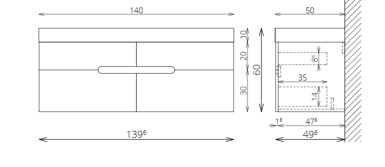 Marmy CODE 140x46x50 DUPLA függesztett alsószekrény, 4 fiók, laminált (mosdó nélkül) Dark Taupe 20 40 24 14 00 74