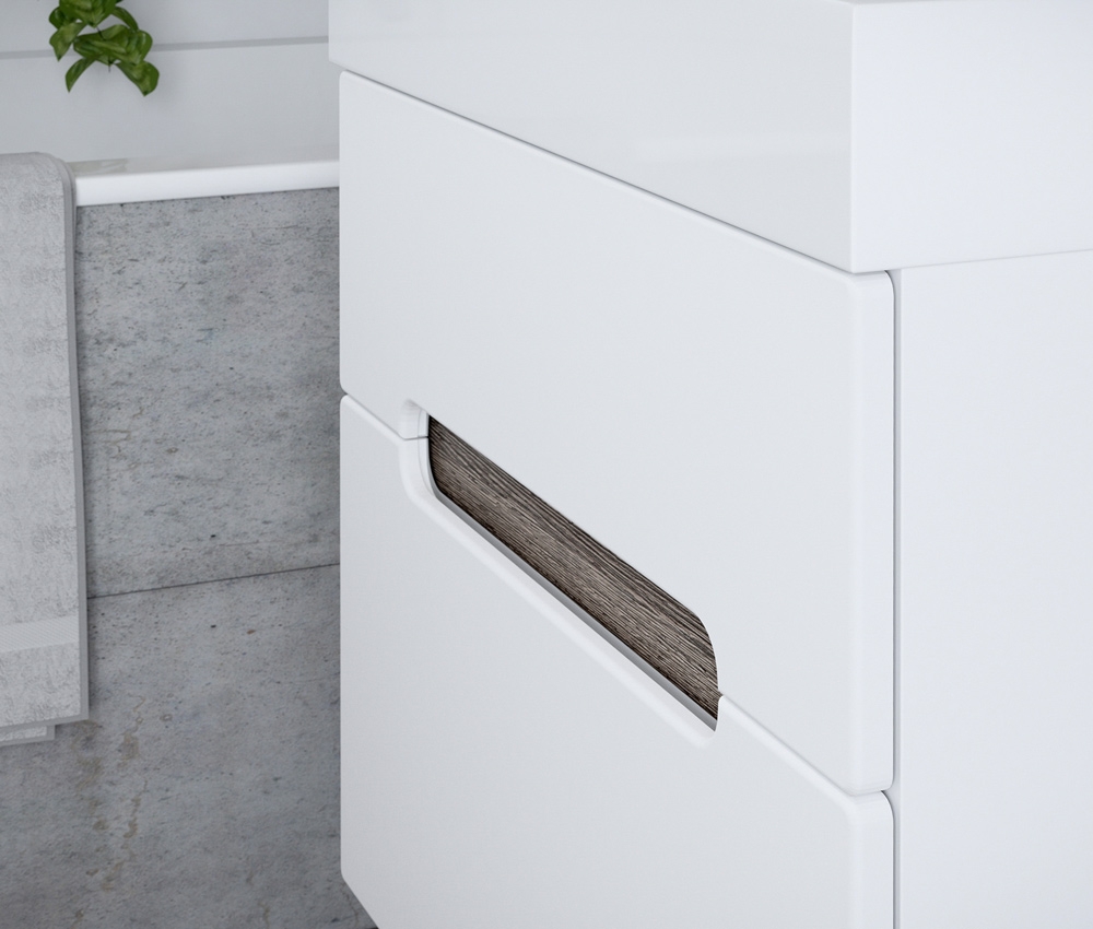 Opcióként rendelhető: Szimpla vagy dupla törölközőtartó a szekrénytest oldalába építve, íves törölközőtartó, hengerláb