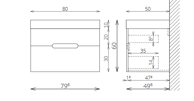 Tboss Quarto 80 AM alsószekrény mosdóval, alsó mart fiók (több színben)