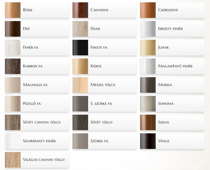 Korpusz: Vákuumpréselt MDF és laminált lapok
