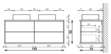 Tboss Minimal 140 2F fürdőszobai alsó szekrény 2 fiókkal, 2 mosdóval