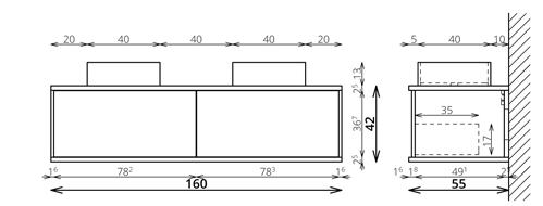 Marmy CODE 160x46x50 DUPLA függesztett alsószekrény, 4 fiók, laminált (mosdó nélkül) Dark Taupe 20 40 24 16 00 74
