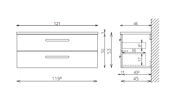 Opcióként rendelhető: bútorláb (nem teljes terhelésre), törölköző tartó szekrénytest oldalára, tükörök, tükrös szekrények vagy kiegészítő szekrény