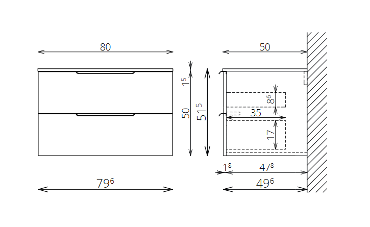 Méret 80x50x51,5 cm