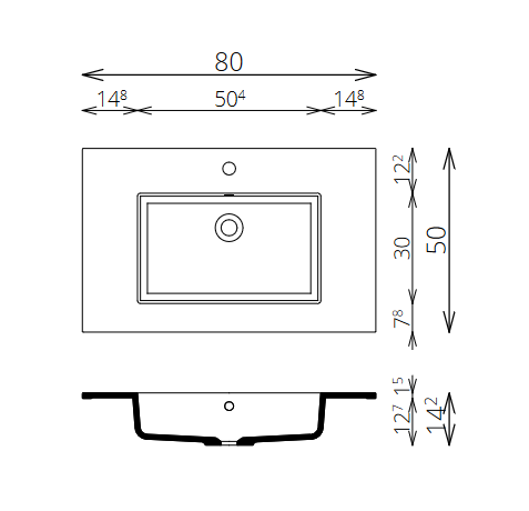 Öntött műmárvány mosdó, egy csaplyukkal középen