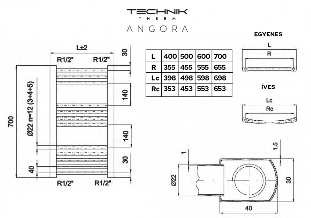 Technik Therm Angora törölközőszárító radiátor 600 mm x 1400 mm, íves, krómozott TTCSKIA-600-1400