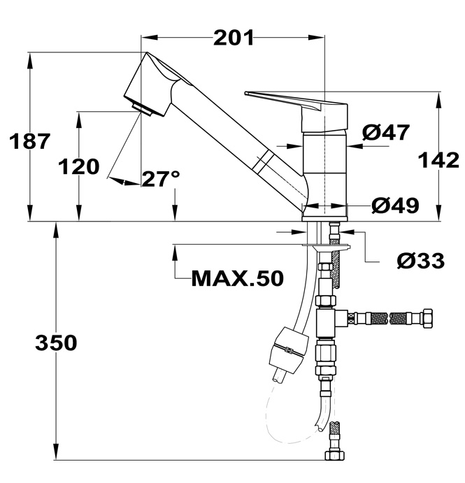 Marmorin álló kihúzható fejes mosogató csaptelep safari