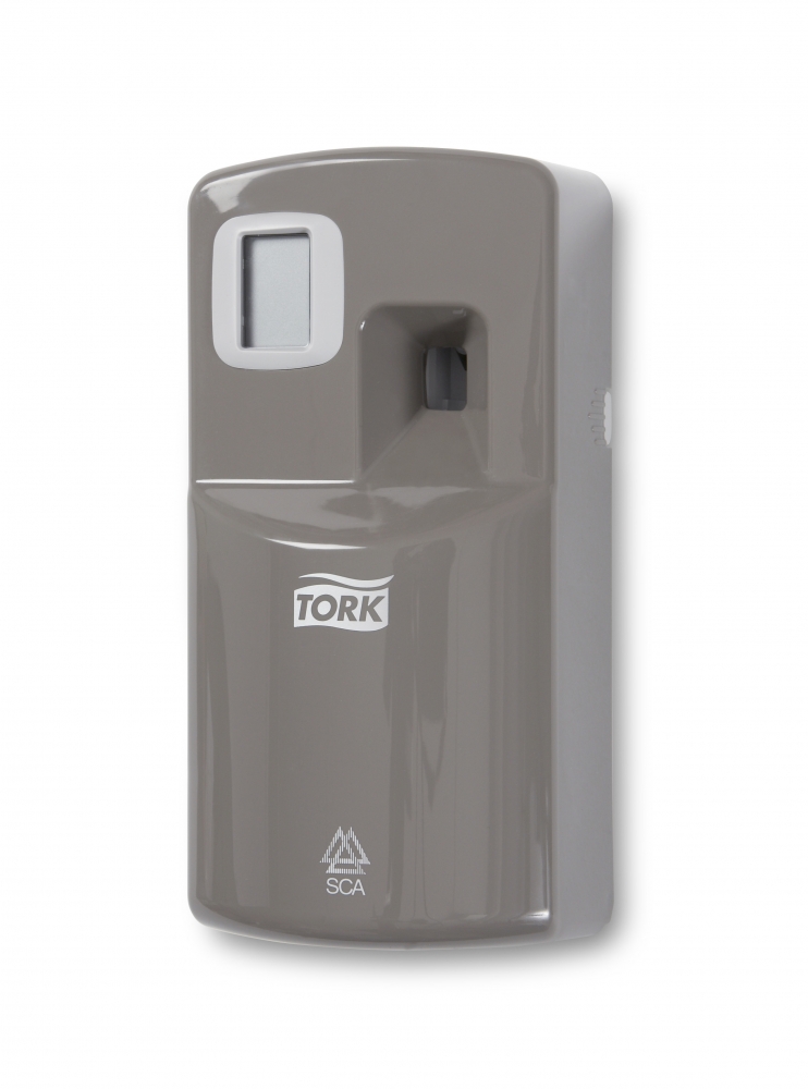 A szürke Tork illatosítóspray-adagoló a Tork Image termékcsalád számára készült. Megjelenése harmonikus a sötét színű csempével kirakott mosdókban. Minden tekintetben kiválóan működik, rendkívül praktikus és a karbantartása is egyszerű. A választható illatutántöltők pedig még hangulatosabbá varázsolhatják a mosdóhelyiséget.
