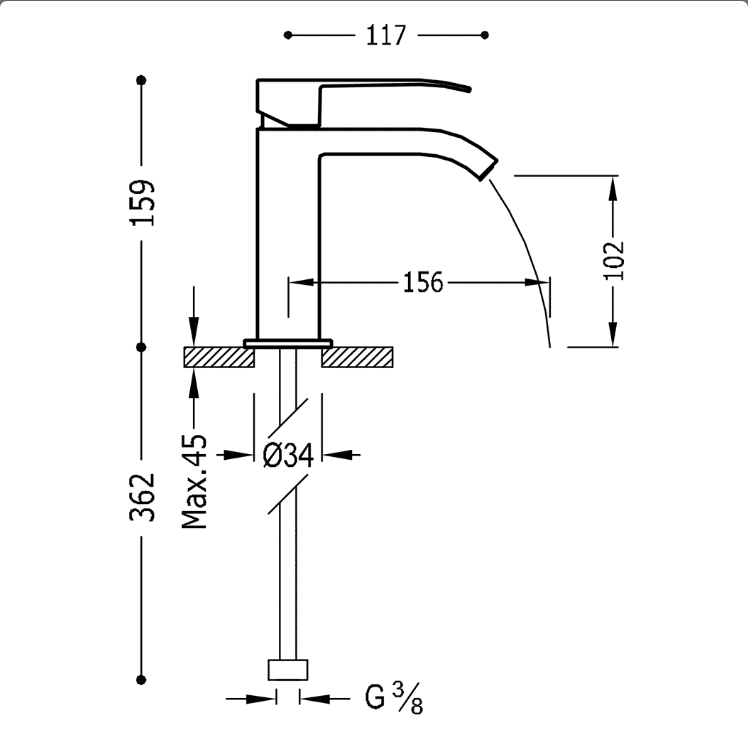 Tres Cuadro Exclusive mosdó csaptelep leeresztő nélkül, steel 00610101AC