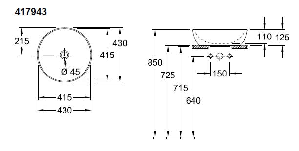 Villeroy & Boch Artis 43 cm ráültethető mosdó 4179 43 01 (41794301)