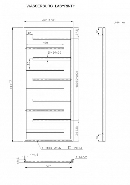 Wasserburg LABYRINTH BLACK 138x60cm törölközőszárító radiátor, fekete 20.25916BWasserburg