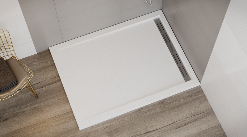 Wasserburg PETRA 120x90 öntött műmárvány zuhanytálca folyókával, fehér 2506R-90