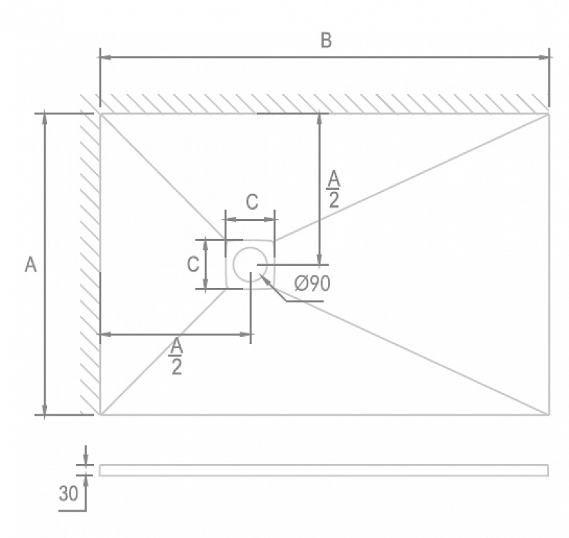 Marmy Dolomite öntött márvány zuhanytálca 90x120 cm, matt szürke 80 7643 90 12 53