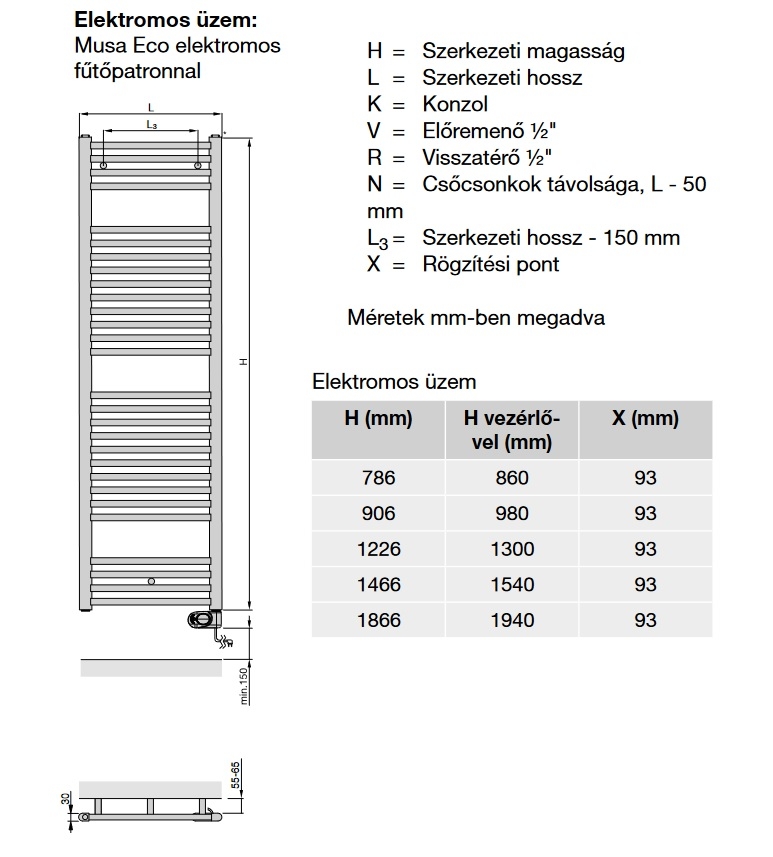 MUSA Eco elektromos fűtőpatronnal integrálva jobbra szerelt,