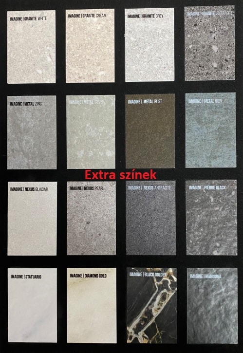 Több alapszínből lehetséges választani! A színminta a fotók között megtalálható vagy üzletünkben megtekinthető. Extra színek felárral rendelhetőek!!! Kérje ajánlatunkat!!! Rendeléskor a megjegyzés rovatba kérjük beírni a kiválasztott színt.